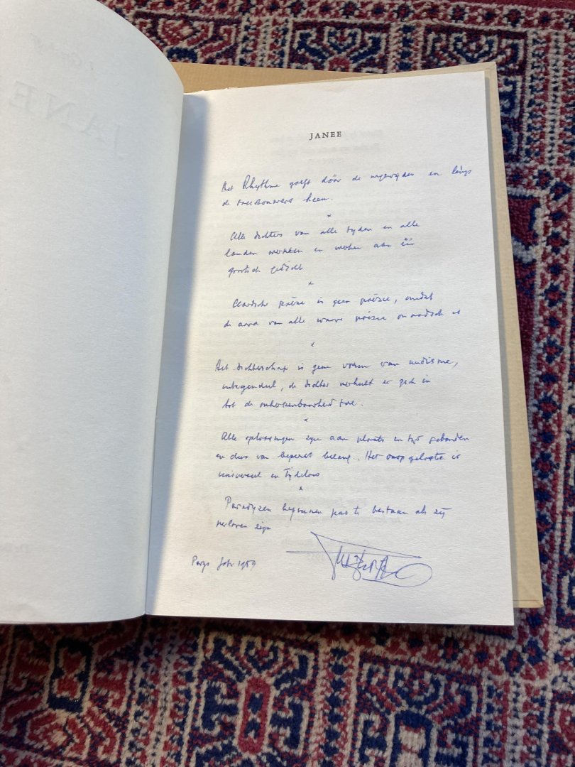 JANEE. Met handgeschreven gedicht en signatuur